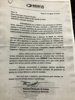 Sendo assim, dando-lhe as liberdades e garantias que o Styvenson Valentim exigia, o Partido REDE e o capitão Styvenson Valentim entraram em comum acordo e fecharam a filiação partidária. Entre criticas e apoio, da forma que o Brasil caminha, está na hora de focarmos em votar em pessoas e não partidos, visto que partidos representam uma entidade privada que detém em suas mãos o mandato do parlamentar, obrigando-o a votar de acordo com os interesses de um determinado grupo e não pessoas.