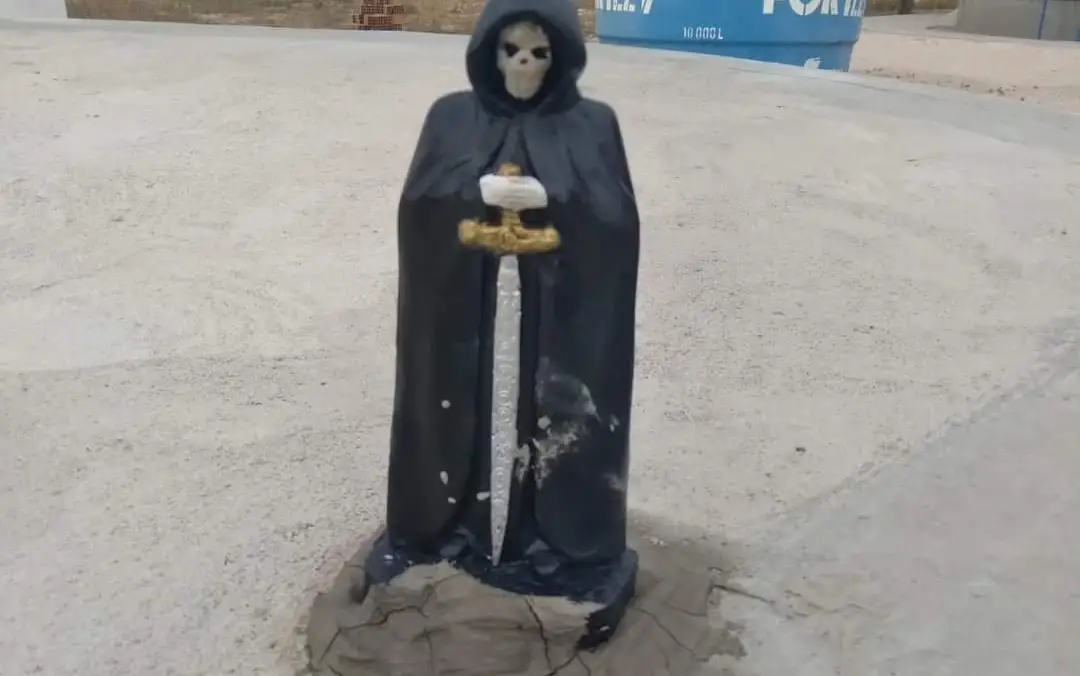 Moradores de um povoado na zona rural de Cacimbinhas, no interior de Alagoas, ficaram assustados quando no início da manhã, viram a estátua de uma caveira, que para muitos representa o anjo da morte, instalada em cima de uma cisterna, em frente a uma igreja.