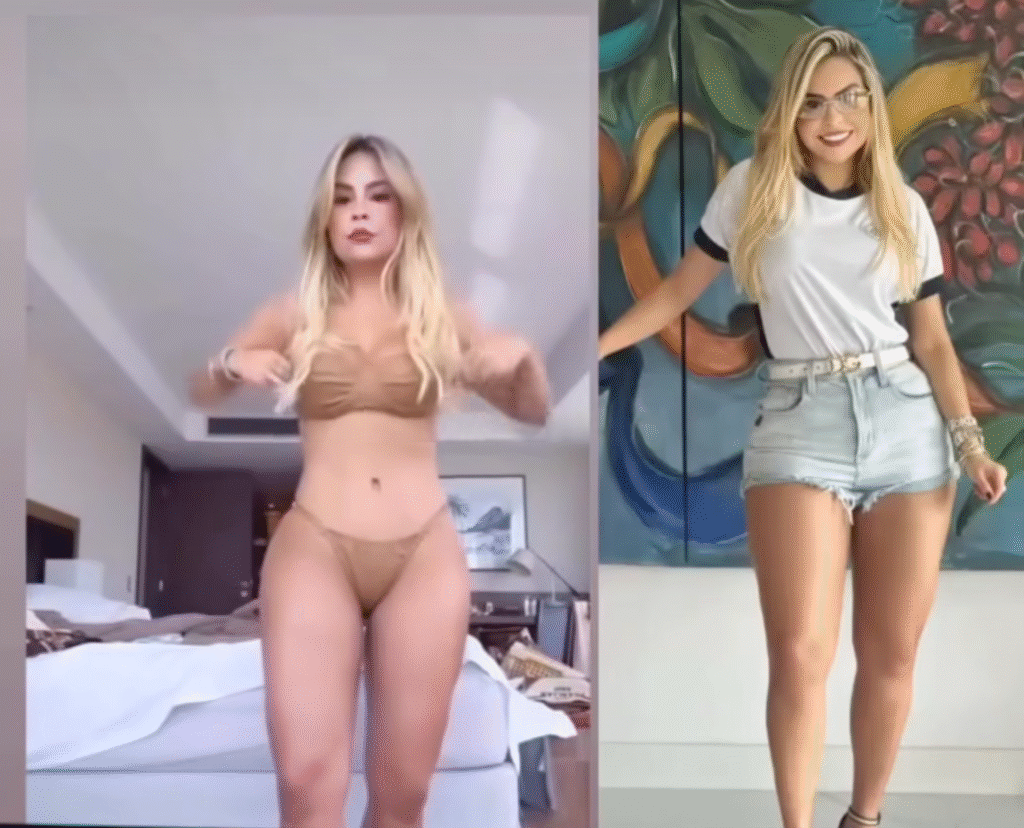 Nas imagens, a gestora aparece usando apenas um biquíni e dançando de forma sensual em um quarto, em um momento aparentemente de lazer.